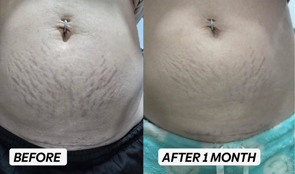 "Having a 4.95kg baby really left some damage. It's only been a month and I am seeing major results. My stretch marks have faded and my skin tone and texture is firmer and smoother. Loving it!"